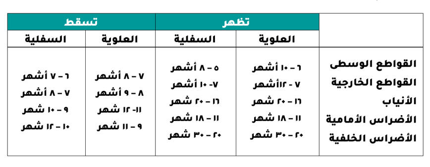 جدول سن الظهور والسقوط ( الأسنان اللبنية )